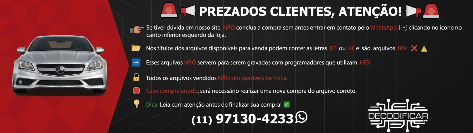 Na Decodificar, o ponto de partida para a escolha correta de um arquivo automotivo é sempre a referência da UCE (Unidade de Controle Eletrônico).